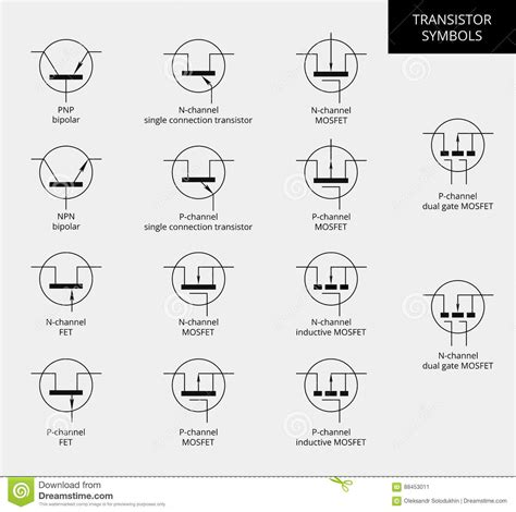 microcontroller vector transistors schematic symbols electronic element circuits set